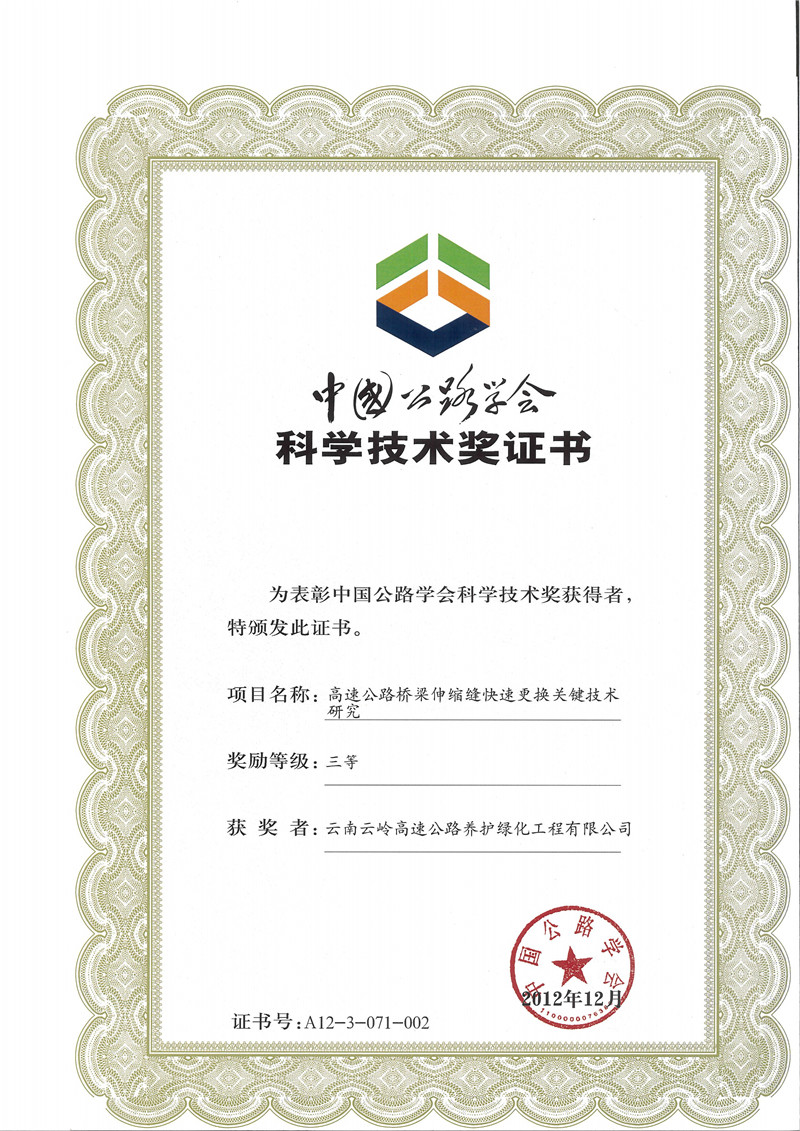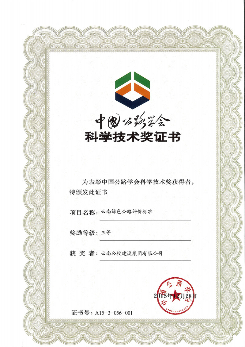 云南省公路学会奖励